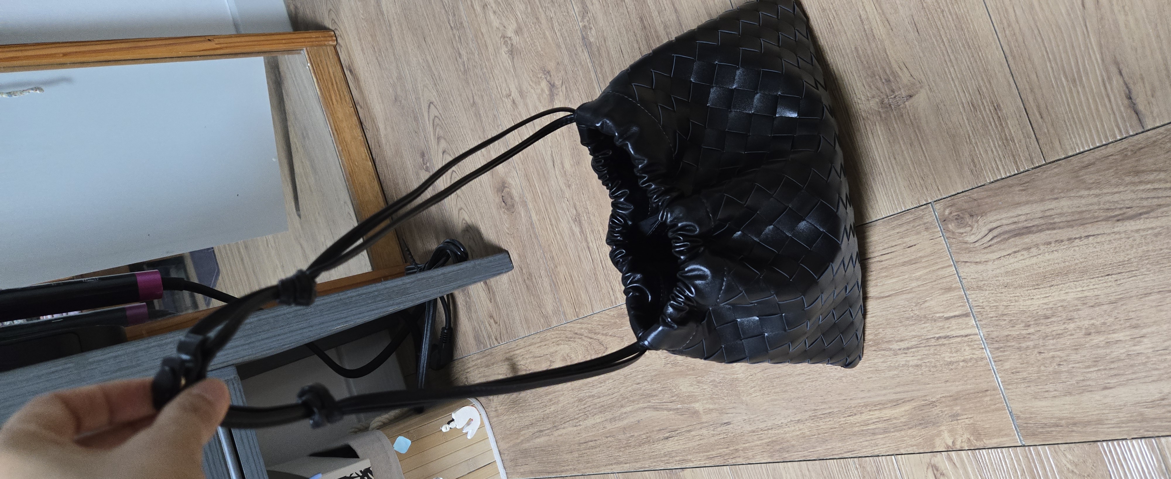 보테가 베네타 미디엄 더스트 백 블랙
