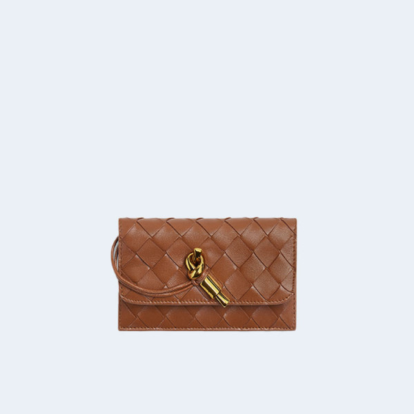 보테가 베네타 스몰 인트레치아토 폴더형 지퍼 지갑 우드