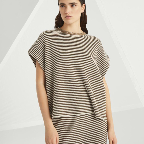 브루넬로쿠치넬리 스트라이프 코튼 스웨터