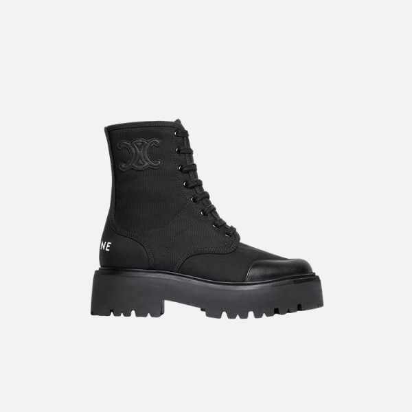 셀린느 나일론 & 샤이니 불스스킨 벌키 레이스업 부츠