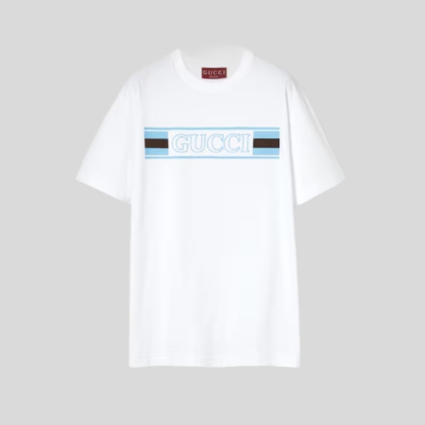 구찌 프린트 코튼 저지 티셔츠