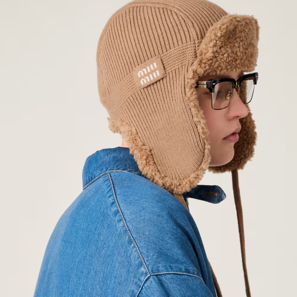 미우미우 울, 캐시미어, 시어링 트래퍼 햇(2color)