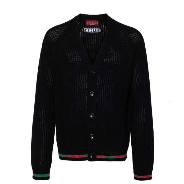 구찌 웹 스트라이프 트리밍 가디건