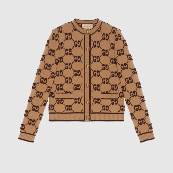 구찌 GG 울 부클레 자카드 가디건 카멜브라운