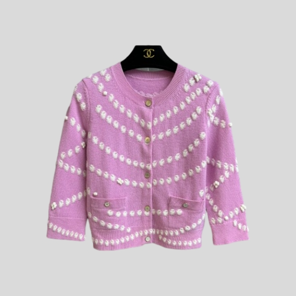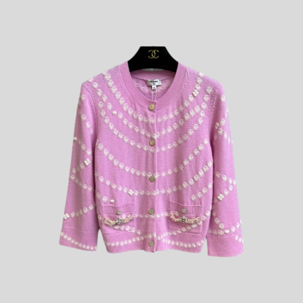 샤넬 핑크 포켓 비즈 가디건