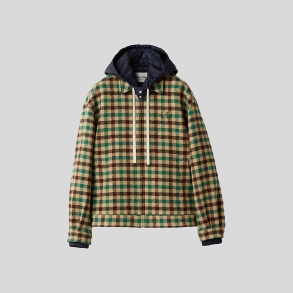 미우미우 깅엄 체크와 테크니컬 패브릭 자켓