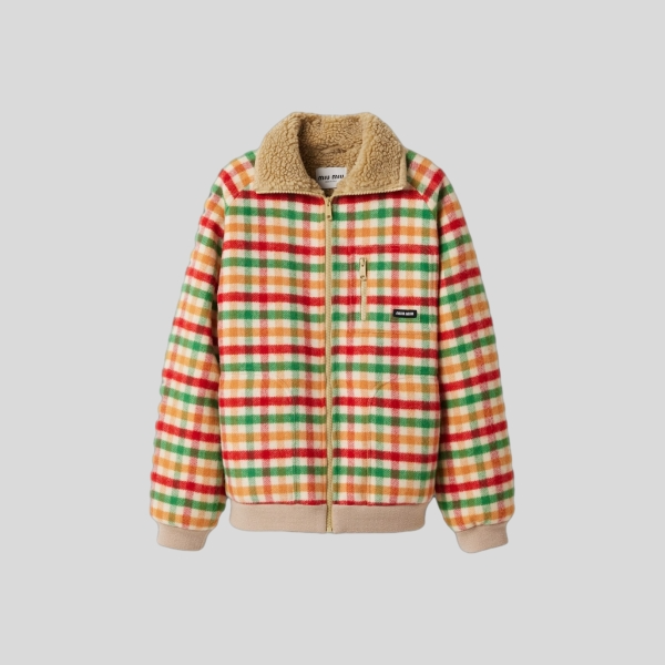 미우미우 플리스 라인드 체크 블루종 자켓