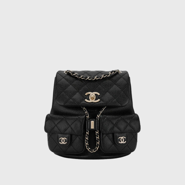 샤넬 백팩 그레인드 샤이니 카프스킨 & 골드 메탈 블랙