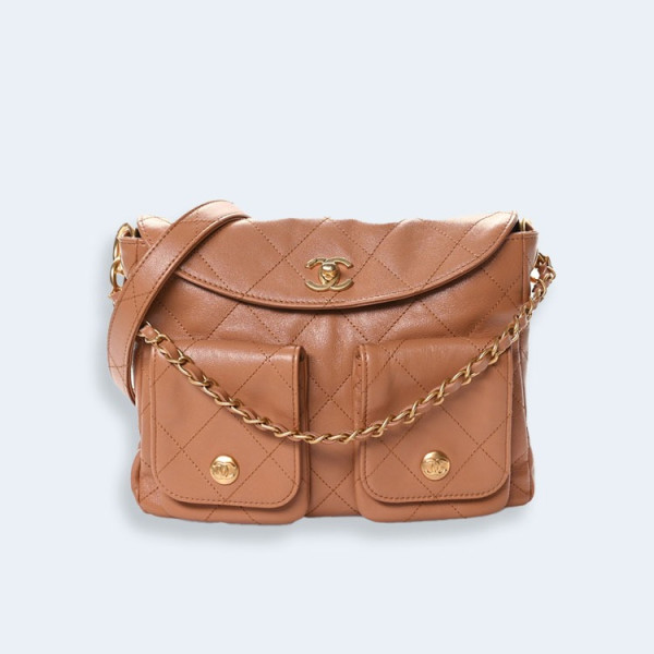 샤넬 샤이니 카프스킨 서플 트윈스 스몰 호보 백 브라운
