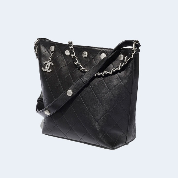 샤넬 유광 램스킨 실버 메탈 라지 버킷 백