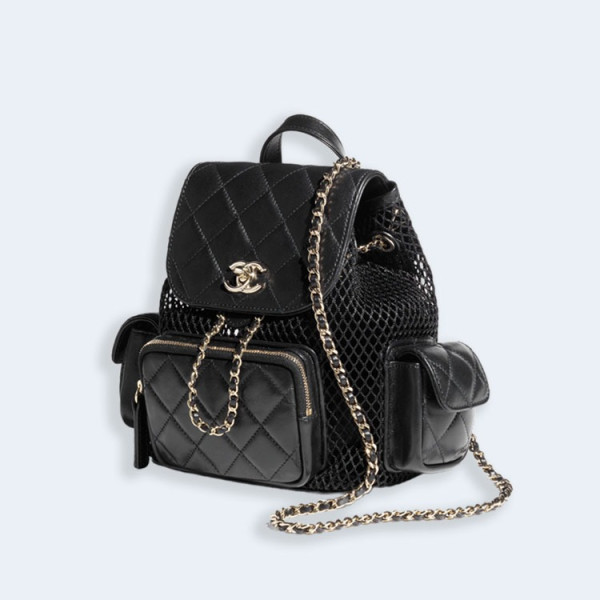 샤넬 메시 유광 램스킨 골드 메탈 블랙 백팩