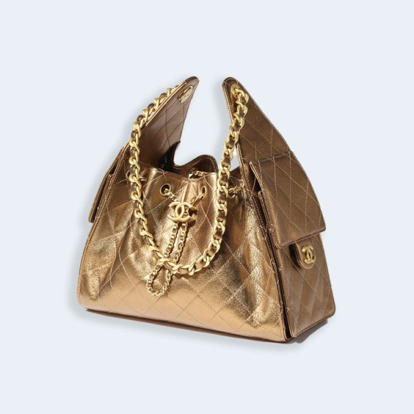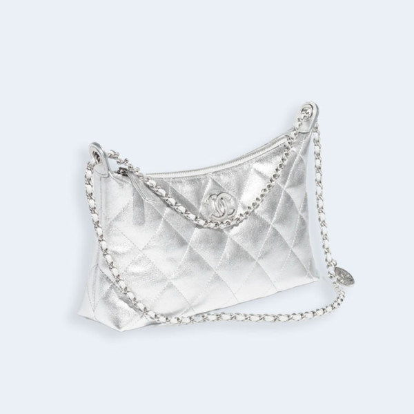 샤넬 메탈릭 카프스킨 실버 메탈 호보 핸드백