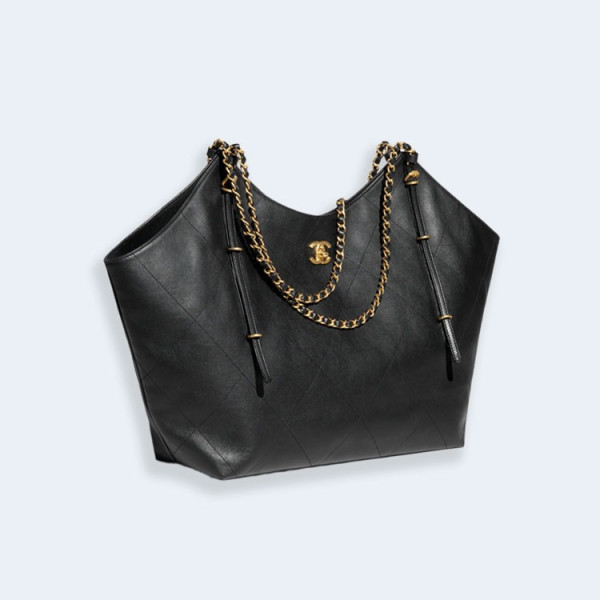 샤넬 맥시 쇼핑백 카프스킨 골드 메탈 블랙