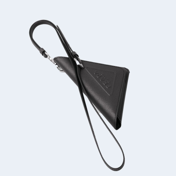 프라다 트라이앵글 사피아노 레더 키체인 트릭 블랙