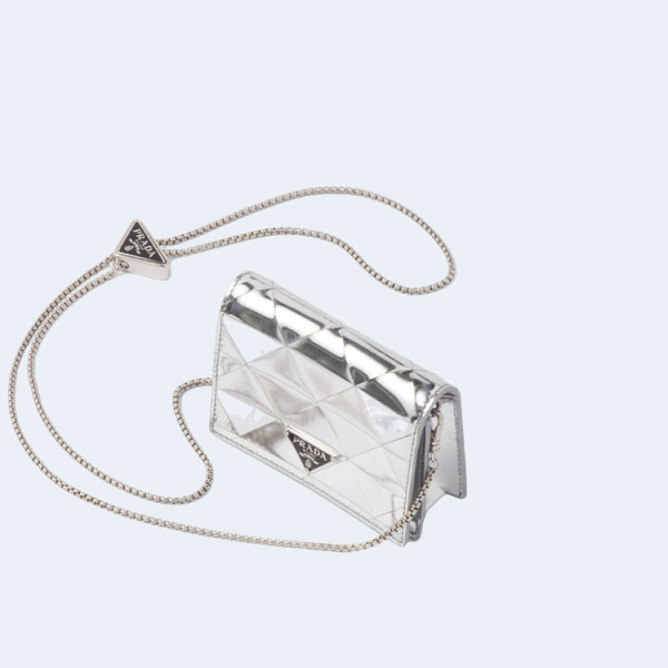 프라다 메탈릭 스트랩 카드 케이스 실버
