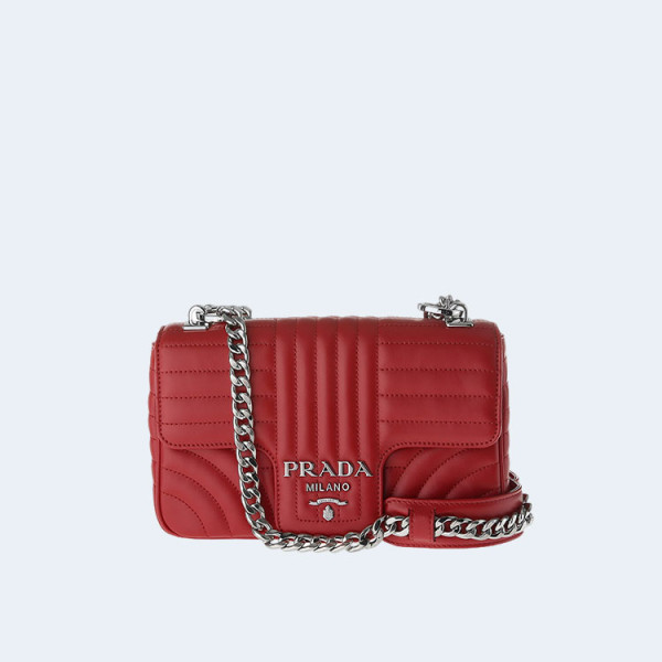 프라다 레드 다이어그램 플랩 체인 숄더백