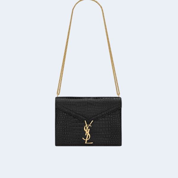생로랑 크로커다일 카산드라 클래스프 백 블랙 골드