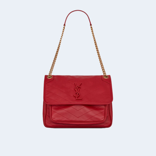 생로랑 니키 스웨이드 미디움 체인백 레드