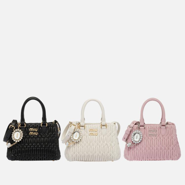 미우미우 미우 크리스털 나파 가죽 핸드백