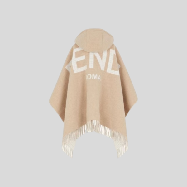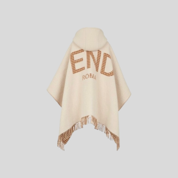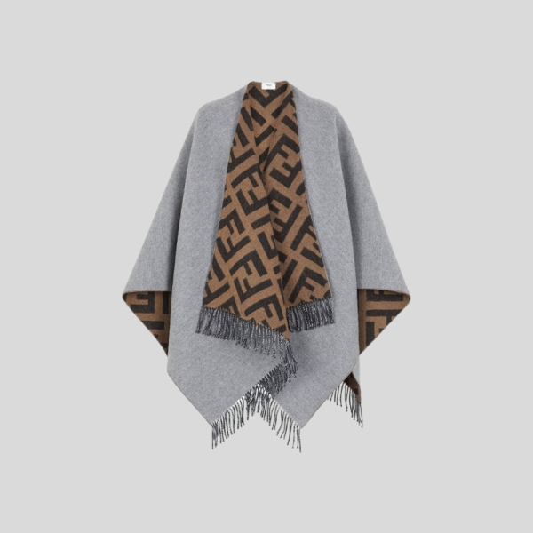 펜디 FF 로고 프린지 울 캐시미어 후드 케이프
