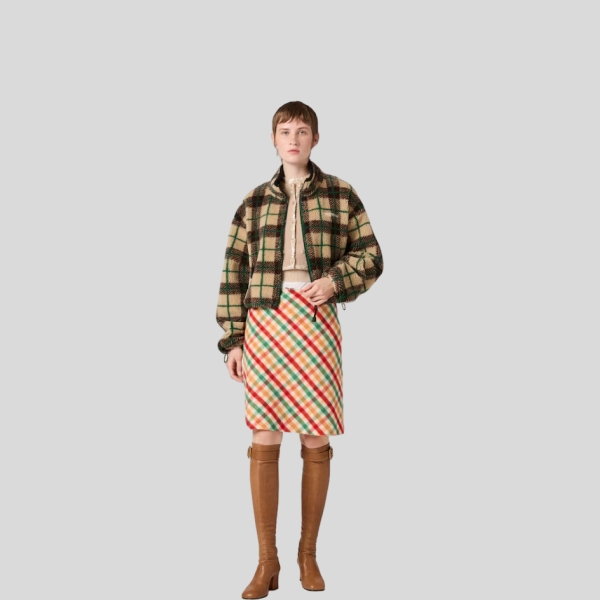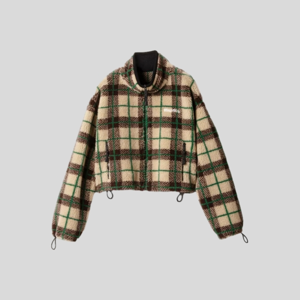 미우미우 체크 테디 재킷, 지퍼 장식