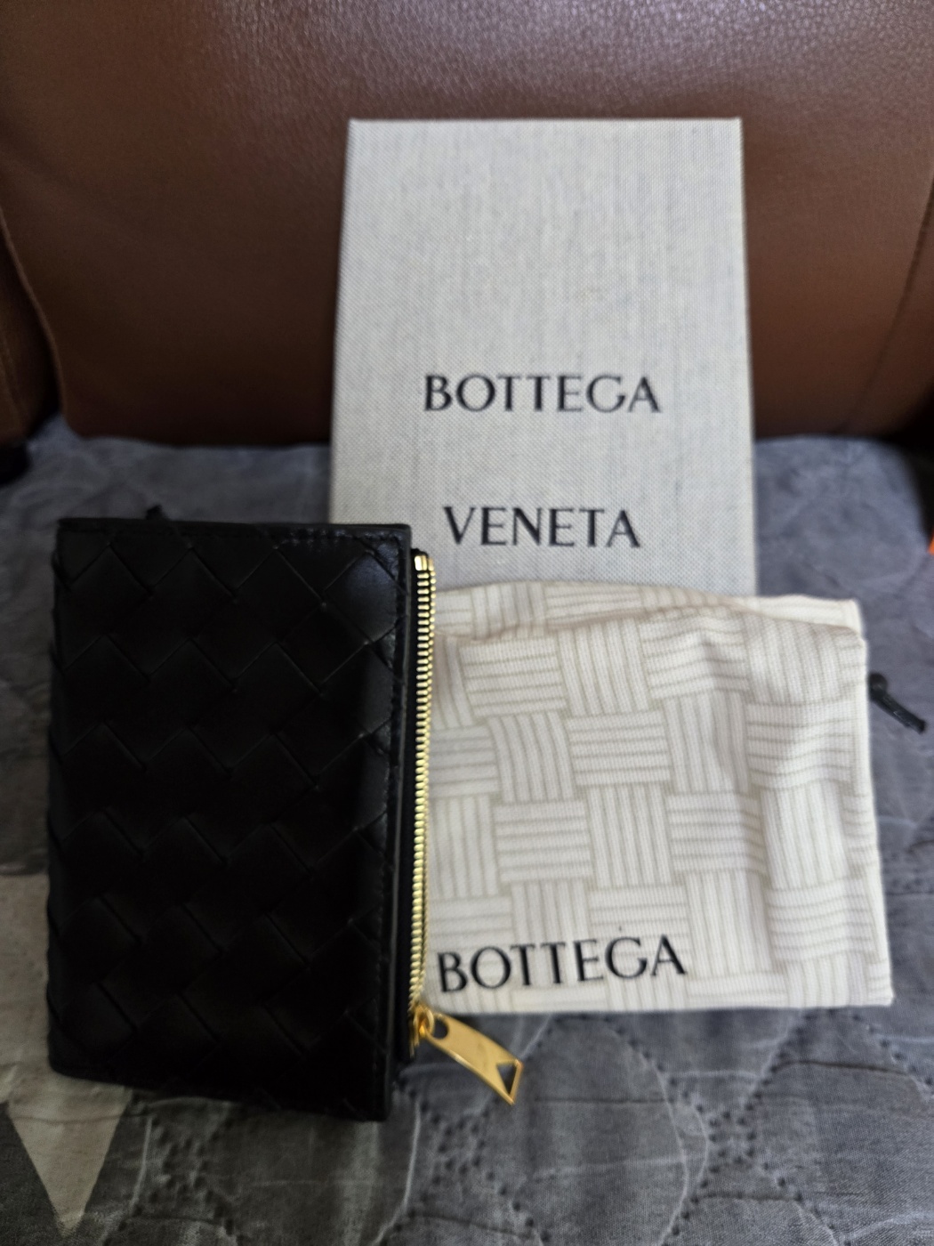 보테가 베네타 스몰 인트레치아토 폴더형 지퍼 지갑 블랙