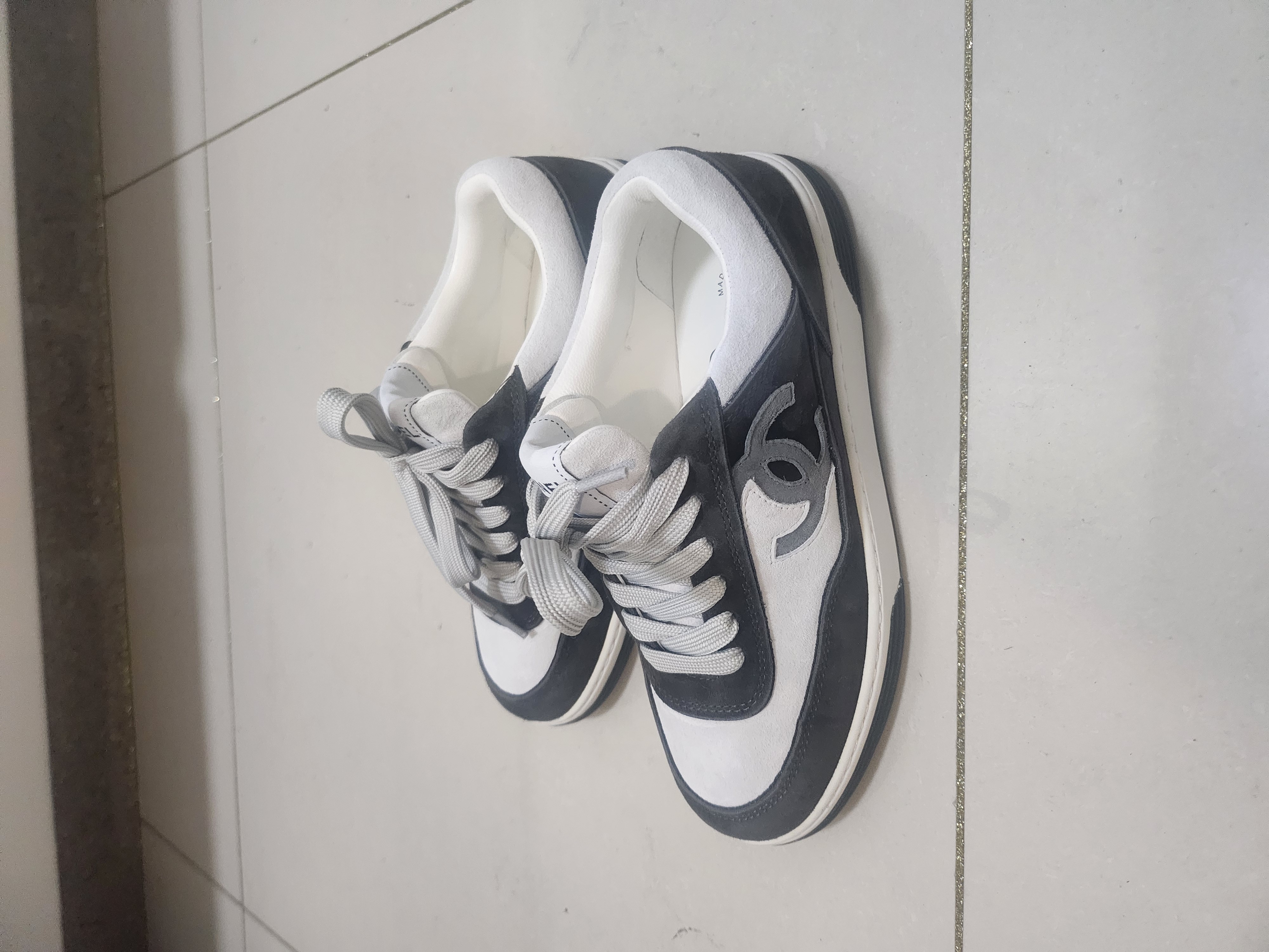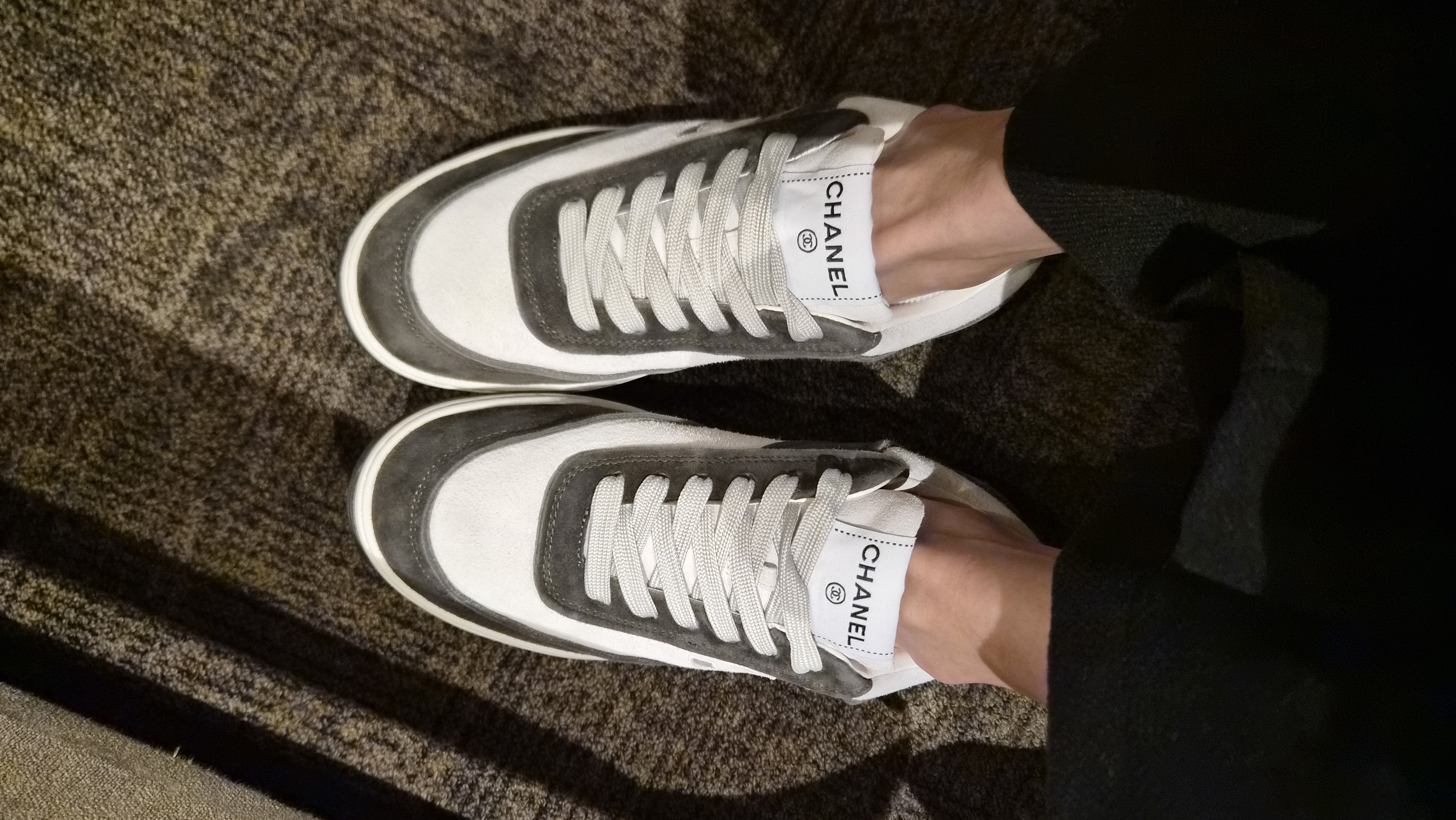 샤넬 메쉬 스웨이드 카프스킨 화이트/블랙 스니커즈
