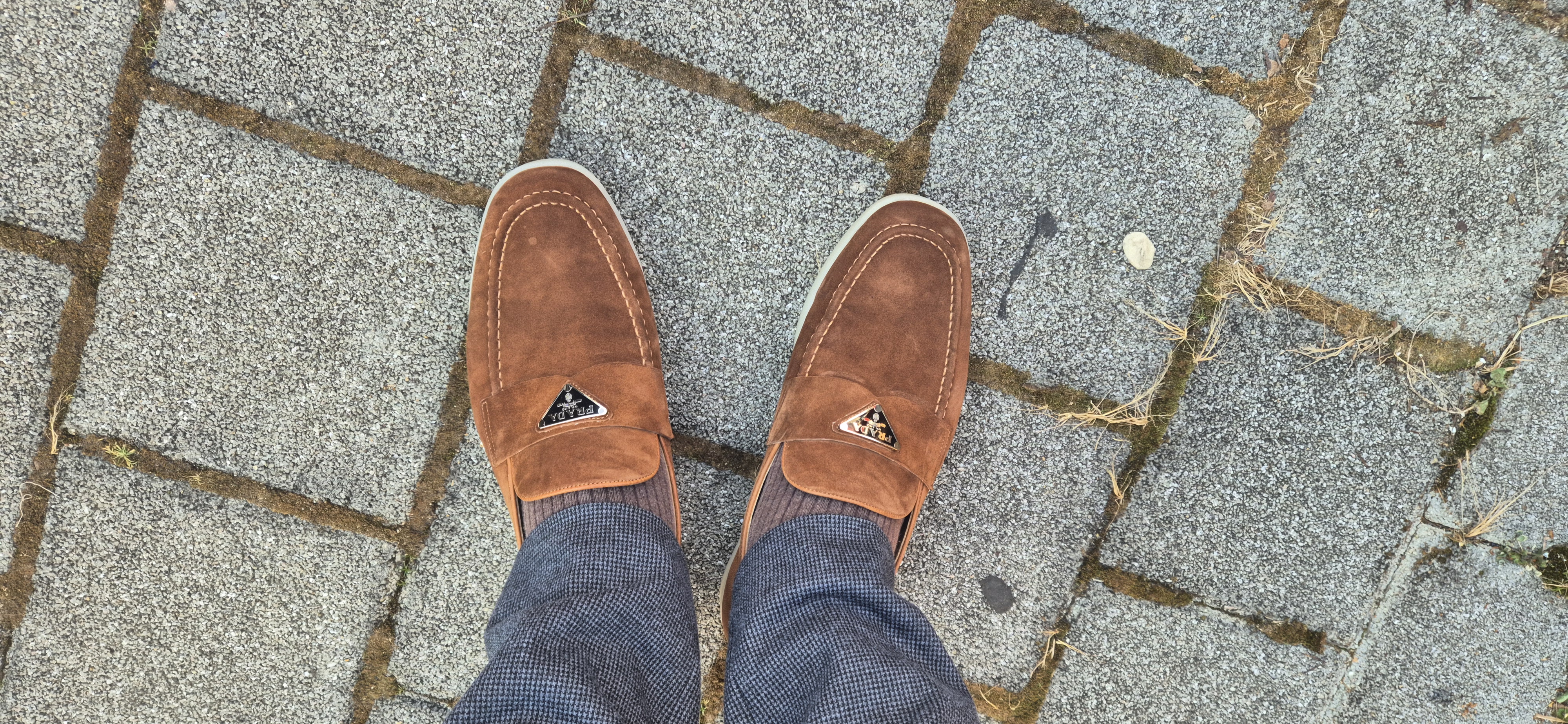 프라다 스웨이드 가죽 브라운 로퍼