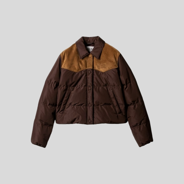 미우미우 테크니컬 퐁제와 가죽 다운 자켓