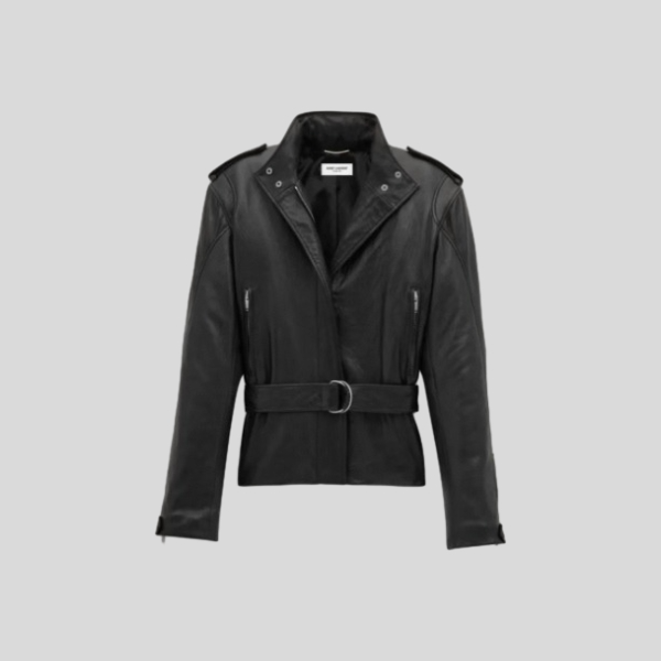생로랑 벨트 가죽 자켓 브라운